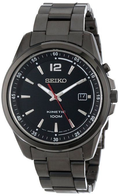 这款精工男士人动电能手表为美亚独家销售款式,采用人动电能技术,指的是佩戴者通过手臂摆动产生并储存电能,为手表提供动力,外观采用黑色离子镀全钢表壳表链设计,酷劲十足,防滑痕抗反射蓝宝石玻璃表镜下为黑色哑光表盘,表盘上镶有银色刻度,边缘精确到秒,3点钟方向为日历显示窗,夜光指针方便夜间读取,表盘直径42mm,防水深度100m。美国亚马逊(下单教程)原价$400,现价$159.61 ,节省60%! 到手约: ¥1070(含转运费) 海淘有问题?关注(海淘常见问题解答专贴),识货教你玩转海淘。