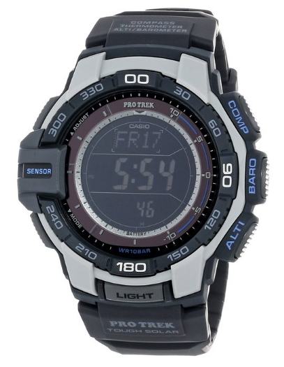 此款型号为PRG-270-7CR 男款腕表,第三代三重感应器(温度,气压,高度), 进一步减少了能量消耗且提高了测量精度。太阳能驱动,同时新增风暴警告功能,天气突变时,配戴者可第一时间知晓。可抵抗低温-10°C 。其他方面:世界时间(48城市)、日出日落时间显示*秒表(1/10秒)、倒计时、闹铃、电量指示符、全自动日历、12/24小时时制。美国亚马逊(下单教程)第三方特价$97.49(到手约¥650)