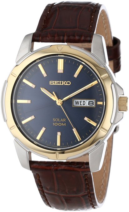 这款精工男士经典光动能手表内置精确日本石英机芯,利用自然光供能,无需电池,节能环保,外观采用褐色真皮表带搭配金银配色不锈钢表壳设计,尊贵典雅,气质非凡,防刮耐磨矿物玻璃表镜下为蓝表盘,表盘上镶有金色全时刻度,边缘精确到秒,3点钟方向为日历显示窗,夜光指针方便夜间读取,表盘直径37mm,防水深度100m。美国亚马逊(下单教程)原价$195,现价$99.36,节省49%。到手约¥660.4 (含转运费) 海淘有问题?关注(海淘常见问题解答专贴),识货教你玩转海淘。