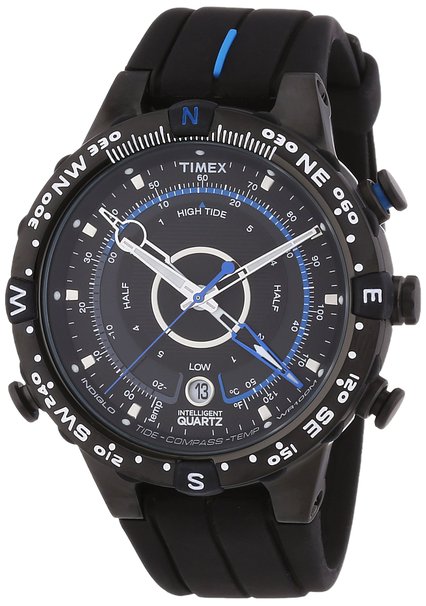 Timex Men's T49859 Intelligent Quartz Adventure Series Tide Temp Compass Black Silicone Strap Watch天美时多功能计时男表,延续了天美时IQ系列出彩的外观设计,采用天美时特有的六指针机芯,表径45mm,厚度13.2mm适合大多数人佩戴,功能包括指南针、潮汐时间、温度测量计时、日期显示,4指针包括小时、分钟、秒钟、以及计时码表,当然TIMEX招牌式的INDIGLO®夜光表盘是不可或缺的,不锈钢表壳,树脂表带,防划矿物表镜,防水深度100米。今日售价$91.99,结账可在专区凑单使用满$100额外6折优惠码TIMEXDAY12,码后实付新低$53.99,到手约380元。(下单教程)