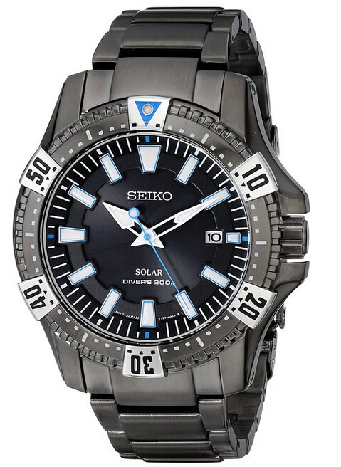 Seiko是日本晶振制造商Seiko Instruments Inc.的缩写,也称为SII。SII拥有世界上顶端的机械技术。除了是世界上著名的石英手表厂商,同时也生产电脑打印机。SNE281是精工今年刚上市的新款潜水表,采用V157太阳能机芯,终身无需更换电池,因此不用担心会因为换电池影响防水密封性,不锈钢表壳和表带均经过离子镀黑工艺处理,单向旋转表冠可进行60分钟计时,带日历显示,表盘直径43mm,耐磨矿物表镜,防水200米,适用于水肺潜水