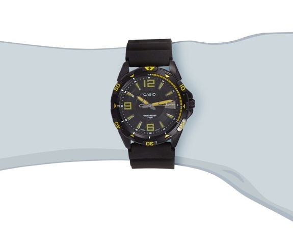 卡西欧手表是日本三大品牌之一,CASIO 卡西欧赛车石英男表 MTD-1065B-1A2VDF,黑色塑胶表带,IP电镀表壳,强劲夜光黑色表盘,黄色主题,个性魅力,它具有日历、100米防水等功能。美国亚马逊(下单教程)特价至$37.85(到手约320元)