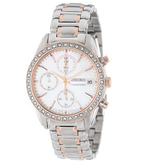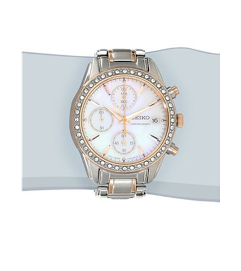 Seiko SNDY18 是来自精工的一款设计感十足的吸睛女表,外观时尚,做工精湛。经典珍珠母贝表盘,表圈镶有施华洛世奇水晶,闪闪夺目,搭配不锈钢表壳表带,大气典雅。采用石英机芯,Hardlex 水晶玻璃镜面,防划耐磨。表盘直径为34mm,厚度为9mm,支持30米防水。