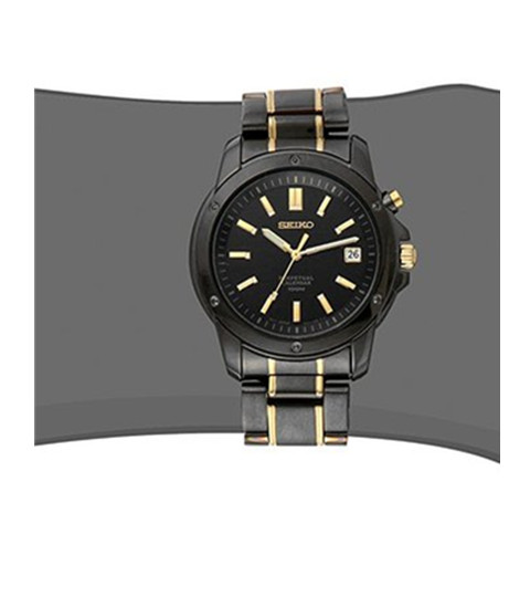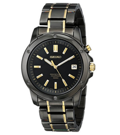 Seiko是日本晶振制造商,是世界上著名的石英手表厂商。这款是精工的SNQ045男士手表,手表粗矿明朗,离子镀黑显得深邃神秘,与金色搭配大气也不至于土豪,40mm的表盘一般人也都可以驾驭了,采用6A32的石英机芯。防水深度100米,带有万年历功能。