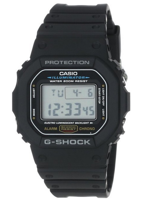 Casio 卡西欧 G-Shock DW5600E-1V 经典石英手表, 采用方形表盘,石英机芯,200M防水,塑胶表带,电子荧光照明、世界时间(48个城市)、秒表(精确到0.01秒)、倒计时、多功能闹铃、全自动日历、12/24小时制。 经典、简单、大方的设计,加上抗寒、抗震耐摔的特质(以DW5600E为关键词在各大视频网站搜索,能看到各种摔手表的视频,还有人冷冻手表的),适合各种极限运动,也是超人必备,某人在《头文字D》里面佩戴,更是让手表火了一把。