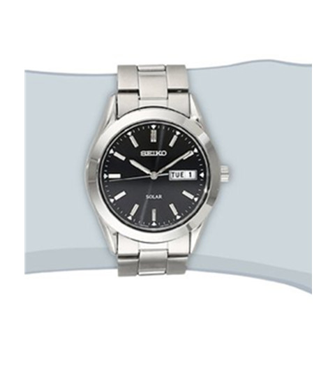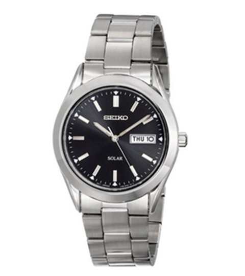 此款 Seiko 精工 SNE039 男士 太阳能 不锈钢腕手表采用圆润及流畅的线条,复古带点优雅的表耳满足了视觉上的享受,抛光表框与雾面表带形成了完美的对比,耐磨矿石水晶表镜,三折式按钮开关表扣, 都会风格色系表盘,搭配时尚感的银色指标、指针,并有萤光指针、萤光点刻度,日期、星期等功能显示,既绅士又具专业气质,表现的淋漓尽致。表壳直径40mm,厚9.5mm,30米生活防水。