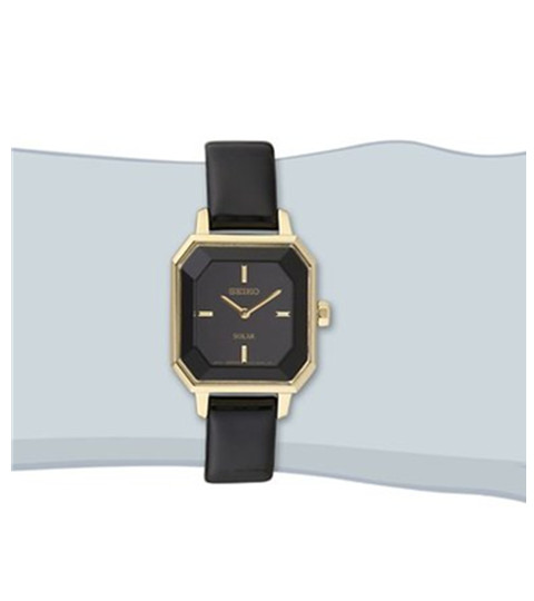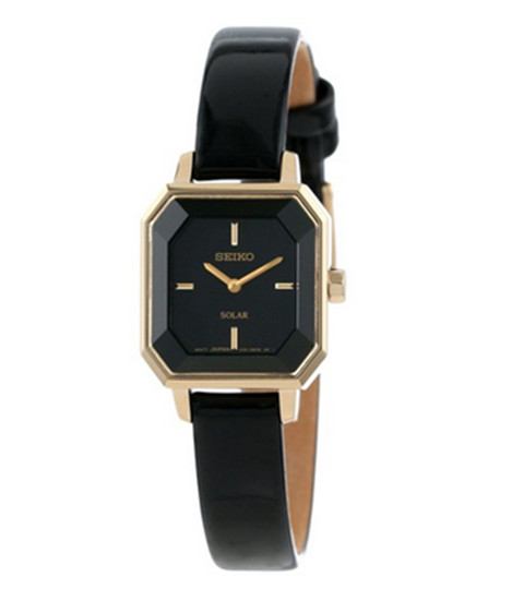 精工(SEIKO)是一家著名的日本制表公司,始创于1881年,公司原名为服部计时店,1892年改名为精工舍。1924年,发表了第一只正式使用精工品牌的手表。此款精工女士SUP198时尚石英手表内置精确日本石英机芯,外观采用黑色漆皮表带搭配金色不锈钢表壳,非常的时尚现代,防刮耐磨矿物玻璃表镜下为黑色表盘,表盘上镶有金色刻度,金色时分指针简约时尚,内置Solar光动能技术,利用自然光功能,无需电池,节能环保,表壳直径27mm,30m防水。