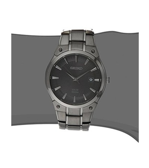 此款是 精工男士 SNE325 礼服太阳能模拟显示日本石英手表。太阳能光能驱动,具有10月电力储备,日本石英机芯,质量一流,100米防水设计,整体黑色可搭配黑色或者深蓝色的礼服,非常帅气时尚!