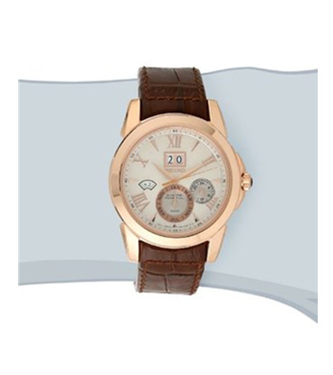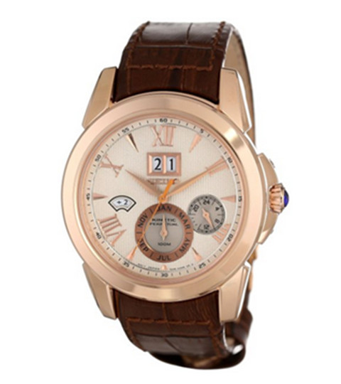 Seiko 精工 Brown SNP068 男士石英手表有万年历功能,不用手动调节闰年月,凸圆形表冠,日期窗口开是12点方向下,下方表圈一个计时一个则为秒表,41.5毫米表径,不大不小手腕细一点也可戴,小牛皮皮革表带,经处理的玻璃水晶表镜,100米防水,总体性能非常不错。美国亚马逊(下单教程)目前售价$311.63 到手约¥2091。