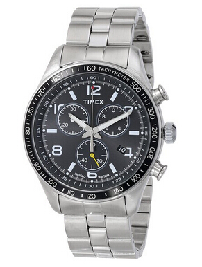 Timex天美时Ameritus系列手表,型号为T2P041KW,三眼设计,50m防水、表带采用银白色不锈钢材质,表盘是黑色的,有2个指针是白色的,所以看时间一点也不费力,50米防水功能,比较便宜简单,随便带带,老外的评价是随便带带也可以,上班带也合适,看起来还算漂亮。