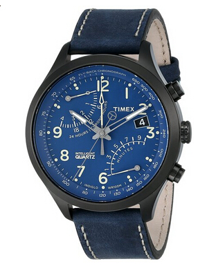Timex天美时这款男士手表,型号为T2P380,表带采用深蓝色皮革材质制成,耐磨抗皱,持久耐用;表盘是深蓝色,指针是白色,搭配黑色不锈钢表轮,看时间很清晰,而且时尚大气;该手表更设计有Indiglo夜灯方便夜间阅读,防水深度可达330英尺。