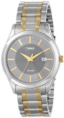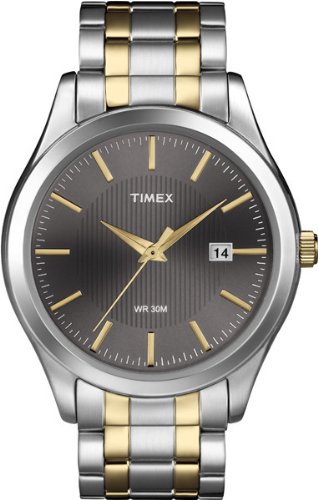 这款天美时型号:T2N799斯文秀气,表盖实用耐用的矿物晶体表面免受划痕手表,织纹炭灰色表盘,防水深度达30米,双色调不锈钢表链,防水深度99英尺(30米),经受雨水和水溅,但不洗澡或潜水。