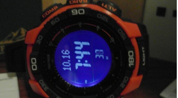Casio Men's PRG-270-4CR "Pro Trek" Digital Sport Watch太阳能登山表,使用太阳能供电无需电池,充满电后最长可待机长达6个月。包括卡西欧全新升级的第三代三重感应器(数字高度计、气压计、温度计和指南针),进一步减少了能量消耗并提高了测量精度。新增风暴警告功能,天气突变时,配戴者能第一时间知晓。可抵抗低温-10°C 。全自动EL背光,世界时间(48个城市),5组闹铃,1/100秒表功能等。表盘直径52.4mm,厚度14.4mm,强化耐磨玻璃表镜,防水深度100米,表壳和表带均为树脂,非常轻而且不刺激皮肤。