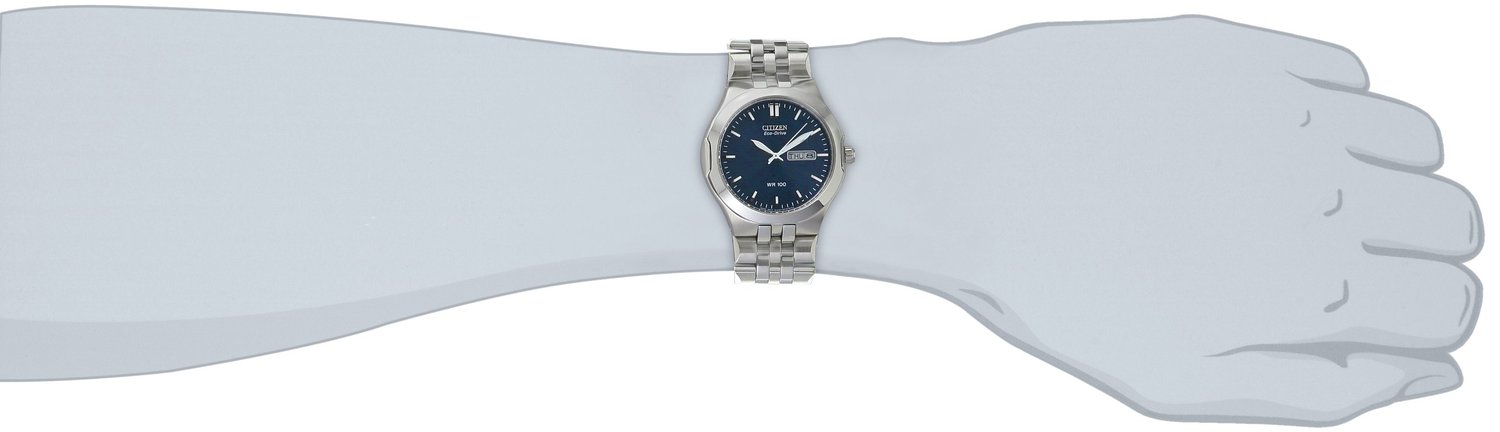 这款Citizen BM8400-50L 西铁城男士光动能全钢石英手表内置精确日本石英机芯,专利的Eco-Drive利用自然光功能,无需电池,节能环保,经久耐用,外观采用银色全钢表壳表链设计,沉稳大气,防刮耐磨矿物玻璃表镜下为蓝表盘,表盘上镶有银色全时刻度,边缘精确到秒,3点钟方向为日历显示窗,夜光指针方便夜间读取,表盘直径41mm,防水深度100m。美国亚马逊(下单教程)目前售价$170,转运到手约¥1140。