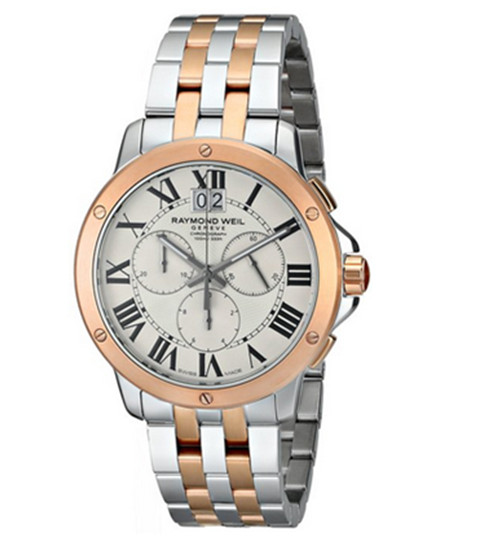 Tango 探戈系列表款是2013年推出的,采用玫瑰金与不锈钢用来满足钟情于双色表款的腕表用家,设计富有动感活力,表圈以6枚螺钉式装饰代替原有的12枚嵌珠式设计。RAYMOND WEIL Tango 4891-SP5-00660 蕾蒙威男款石英腕表,具有三眼计时功能,表径为40mm,防水100M。美国亚马逊(下单教程)目前售价$549.00到手约3511元。