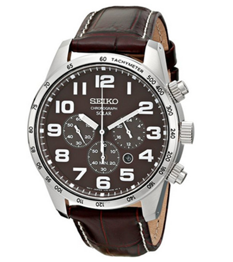 此款是 Seiko 精工SSC227男士光动能三眼计时手表,太阳能动力,超精准日本石英表芯,不需要额外更换电池。不锈钢表壳,棕色皮表带,三眼计时,夜光显示,日期功能,防水达100米。美国亚马逊(下单教程)目前售价$159到手约1040元。