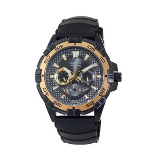 CASIO 卡西欧 MTD-1069B-1A1VDF 动感三眼石英男表,黑色塑胶表带,黄黑双色表圈,它具有星期、日历、24小时制、100米防水等功能,外型时尚美观,值得拥有!美国亚马逊(下单教程)目前售价$60.10到手约456元。