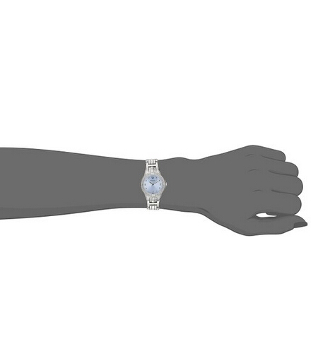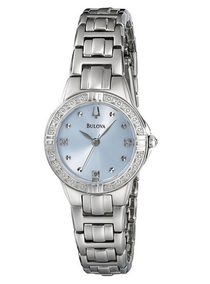 这款型号为96R172 的宝路华(Bulova)时尚女表,采用少见的蓝色表盘,不锈钢表壳和表带,表圈上镶嵌了16颗白钻,3、6、9点钟3颗镶钻时标,表盘直径为32mm,厚度7mm,日本石英机芯,矿物水晶表镜,30米生活防水。美国亚马逊 (下单教程) 原价$375.00 ,现价$110.77 转运到手约 780元。