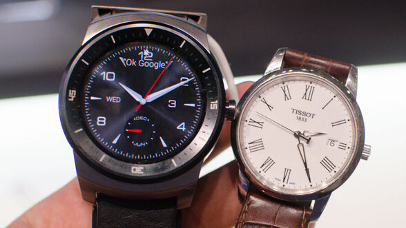 没事,现在完美的圆形Android手表来了——LG G Watch R ,配备了1.2GHz 高通骁龙400处理器,320×320分辨率的1.3英寸圆形 P-OLED 屏幕,4GB eMMC ROM,512MB内存,内置9-Axis(支持陀螺仪、加速度计和指南针),还有气压计,心率传感器,搭载了Android Wear 操作系统。但从外观来说,不锈钢的支架+小牛皮腕带+一块圆形屏幕,高大上的赶脚!