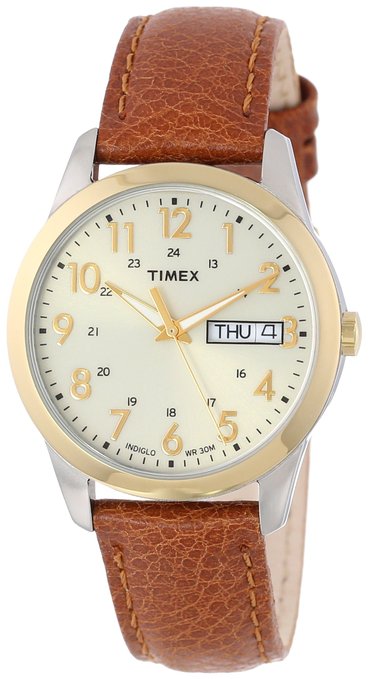 这款Timex Men's T2N105 Elevated Classics天美时经典手表,深浅不一的表中标识与缝合表盘和纹理皮革表带,12和24小时刻度盘格式,日期显示,Indiglo灯,防水99英尺(30米),经受雨水和飞溅的水,但不是淋浴或浸看时间很清晰,而且时尚大气,整体比较时尚精致,无论是买来送人还是自己戴都是不二的选择!