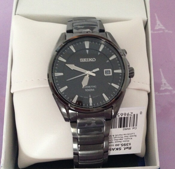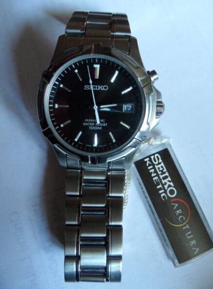 Seiko SKA567 Kinetic Men's Watch精工男士人动电能手表,采用精工Kinetic人动电能技术机芯5M62,可以像自动上弦机械表一样通过手臂的摆动给电池充电,充满电后最长可运行6个月,比机械表只能维持几天的动能储备强了很多,而走时精度达到每月小于15秒误差,也远超机械表。