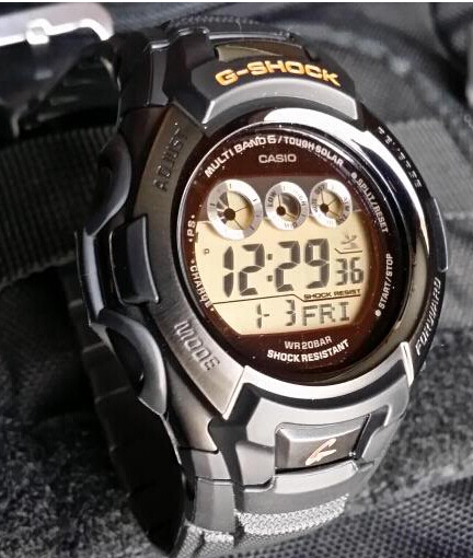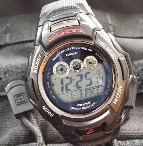 Casio Men's GW-M500F-1CR G-Shock Digital Display Quartz Black Watch太阳能6局电波表,是卡西欧的经典表款之一,采用经典三眼式设计,表壳直径57mm,厚度17mm。通过吸收太阳能供电,无需更换电池。通过内置天线,可以接收6局(日本、北美、英国、德国、河南商丘局)电波对时,达到分秒不差的精准走时。可显示31个时区世界时间,5组闹铃,秒表,倒计时功能等,LED自动背光,帆布表带,防水200米。
