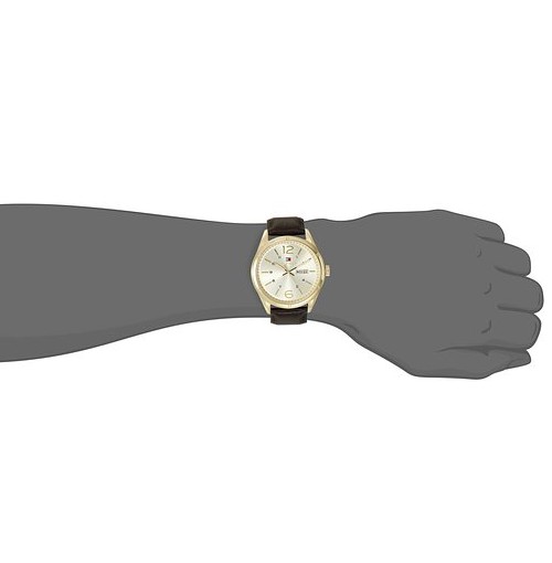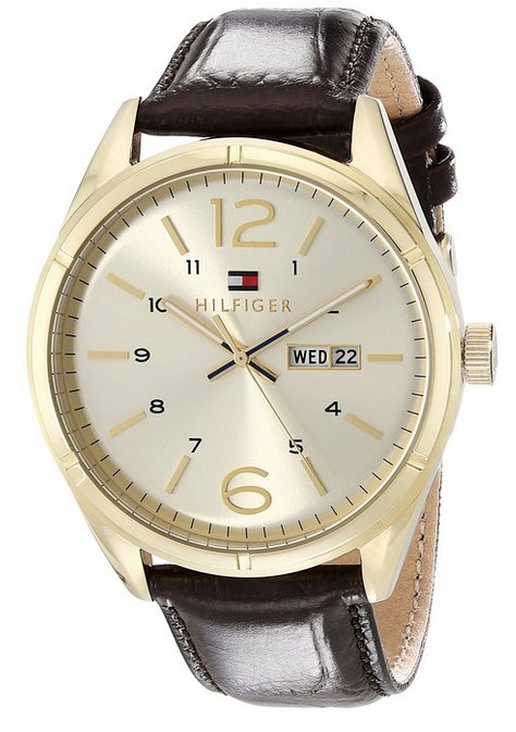 这款汤米希尔费格 1791059 男士鳄鱼皮表带手表,采用石英机芯,表壳直径为44毫米,表壳厚度为9.6毫米,防水深度为50米,耐用的矿物晶体保护手表划伤。镀金外壳,配以棕色鳄鱼皮表带,黑色表盘。美国亚马逊 (下单教程) 原价$135.00 ,目前售价$99.97 转运到手约 695元。