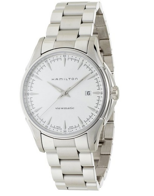 汉密尔顿 男表,属于爵士大师系列。银色精钢表壳表链,银色表盘,银色夜光指针和时标,外缘分钟标记。ETA 2824-2机芯,25钻,38小时动力储备。蓝宝石水晶表镜。3点钟位置日历显示。40mm表盘,厚度11mm,背透底盖,防水50米。美国亚马逊 (下单教程) 原价$795.00 ,目前售价$572.1 转运到手约 3685元。