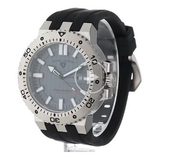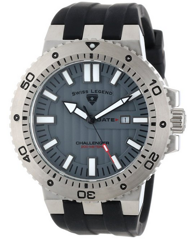 这款Swiss Legend瑞士传奇 10126-014 挑战者男士石英手表,采用精准瑞士石英机芯,合成蓝宝石晶体表镜下为灰色表盘,不锈钢表壳搭配黑色硅胶表带;日期窗口位于3点,夜光指针和标时;单向不锈钢表圈,旋入式表冠;表径50mm,厚度15mm,防水深度200米。美国亚马逊折后价39.99美元,到手仅约¥335元