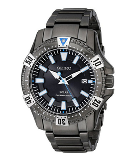 此款是SEIKO 精工 SNE281 太阳能潜水表,采用V157太阳能机芯,终身无需更换电池,因此不用担心会因为换电池影响防水密封性,不锈钢表壳和表带均经过离子镀黑工艺处理,单向旋转表冠可进行60分钟计时,带日历显示,表盘直径43mm,耐磨矿物表镜,防水200米,适用于水潜水。