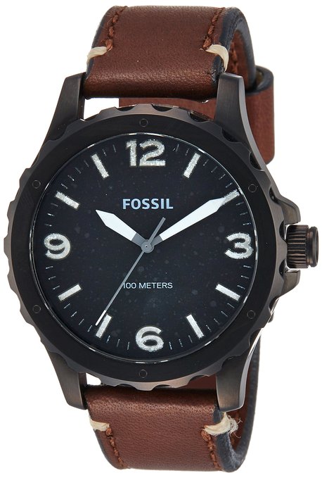 这款Fossil化石 JR1450 男士石英棕色手表,石英机芯,不锈钢表壳,运动经典设计防水3100米:适合浮潜,以及游泳,但不能潜水。