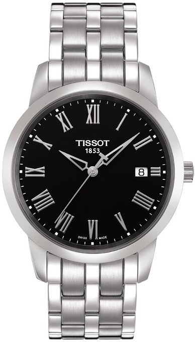 这款Tissot Classic Dream 天梭男士经典瑞士石英手表 ,内置优质瑞士石英机芯,保证了时间的精确,外观采用银色全钢表壳表链设计,沉稳优雅,气质非凡,防滑痕抗反射蓝宝石玻璃表镜下为黑色表盘,表盘上镶有银色罗马数字刻度,边缘精确到秒,3点钟方向为日历显示窗口,扣款指针设计,表盘直径38mm,防水深度30m。