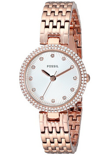 这款Fossil化石女士 Olive 石英手表,内置精确石英机芯,外观采用玫瑰金表壳表链设计,表框周围镶嵌水晶,晶莹剔透,奢华闪耀!白色表盘镶嵌水晶刻度,尽显圣洁高贵,玫瑰金指针简约干净,表盘直径27毫米,防水深度50米。美国亚马逊 (下单教程) 原价$115.00 ,现价$64.79 转运到手约 570元。