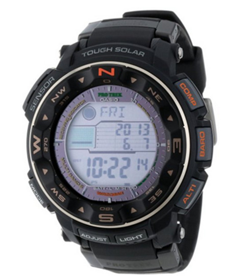 Casio PRW-2500-1CR 探路者太阳能三感应器电波手表功能也非常强大:200米防水,全自动电子荧光照明,罗盘功能,温度,气压和高度测量;抗低温,太阳能驱动,双重液晶显示;6局电波(国内可接受商丘信号);世界时间(36个市区48个城市);月球资料和潮汐图;秒表和倒计时及闹铃功能;全自动日历;按键音开关。美国亚马逊(下单教程)美亚自营目前售价$180.75到约1219元。