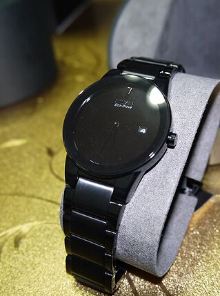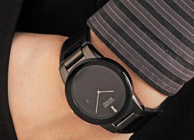 诗人顾城的诗歌善于用直觉和印象式的语句来咏唱童话般的少年生活,这也同样适用于西铁城的这款“Axiom” 公理系列腕表。其设计充满了几何抽象派风格:轮廓分明的、单纯的点、线、面、纯色构成视觉美感的可能性,没有主题、内容、含义;整个表盘有著摩凡陀的既视感,黑色的表盘、黑色的指针、黑色的12点刻度、甚至黑色的Logo,三点钟位置的日期显示算是其中唯一打破黑色的沉默的点缀。40mm宽的黑色表盘搭配黑色电镀处理的表带,整体设计显得极致简约而又圆润光泽,透露出一种深邃的神秘感。