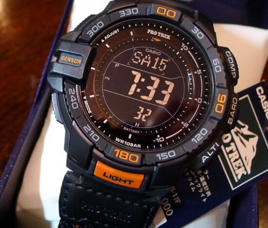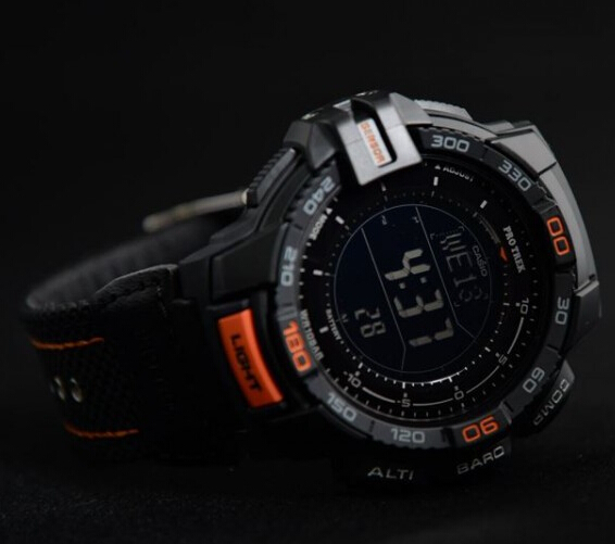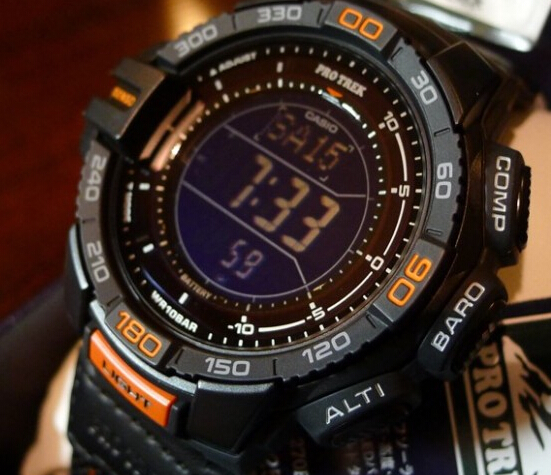 Casio Men's PRG-270B-1CR Pro Trek Aviator Digital Display Quartz Black Watch太阳能登山表,使用太阳能供电无需电池,充满电后最长可待机长达6个月。包括卡西欧全新升级的第三代三重感应器(数字高度计、气压计、温度计和指南针),进一步减少了能量消耗并提高了测量精度。