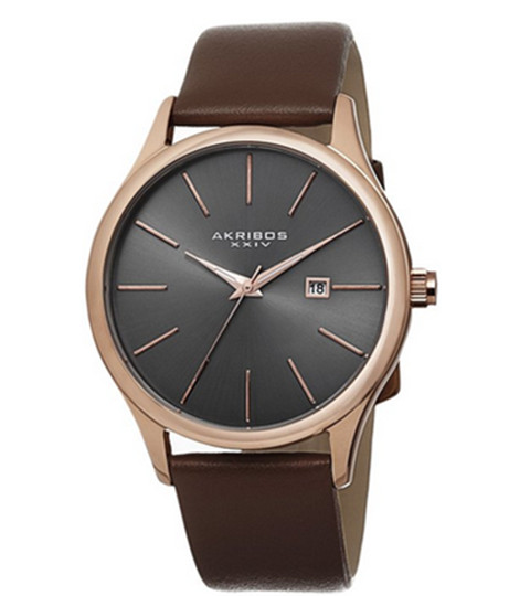 好表白菜价! Akribos XXIV 男士不锈钢棕色皮带手表 $59.99转运到手约458元