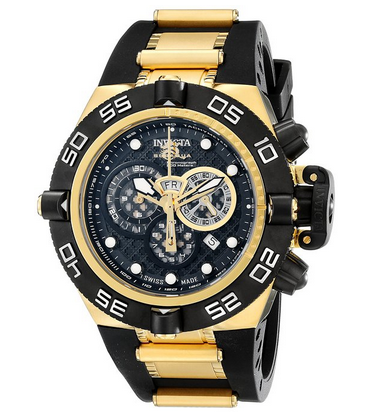 Invicta的这款表身采用18K镀金精钢,黑色的聚氨酯表带,黑色的表盘支持日期、时间、星期显示,黑金相间外观非常霸气;表径50mm,表厚20mm,频带宽度30mm,内置石英机芯;手表500米防水。美亚原价$318.07,现售价$269.99,转运到手约¥2100(海淘教程)