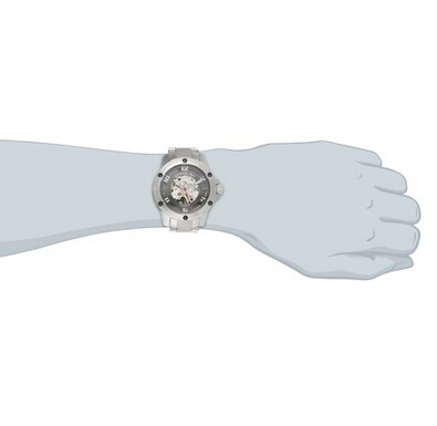手表全身采用银色精钢材质,表面采用透明设计,直接显示手表内部运动状况;表径50mm,14mm厚度,表面表背选用Krysterna Crystal,耐磨不易碎,避震性能出色;采用自上链机芯,防水50米。