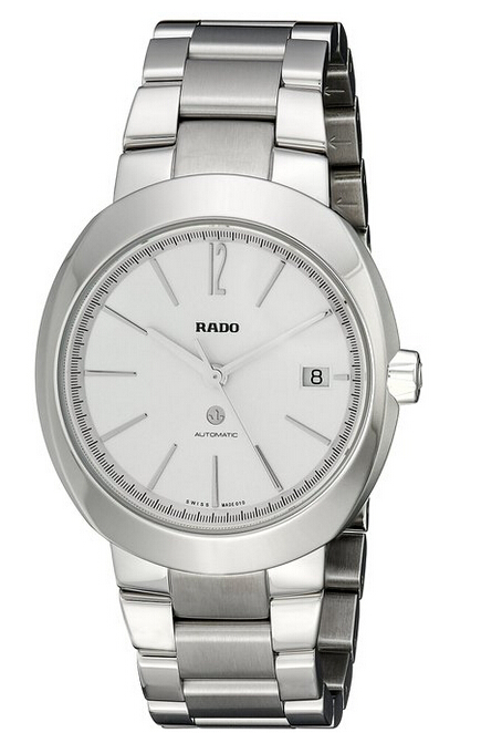 RADO Men's D-Star Watch雷达男式腕表,属于雷达D-Star帝星系列,编号R15513103,采用银色表盘,不锈钢表壳表带,机芯为瑞士ETA2824-2自动上链机械机芯,蓝宝石水晶防刮表镜,背透设计,银色荧光指针和条形时标,直径42mm,厚度12mm,3点钟日历显示,防水100米。