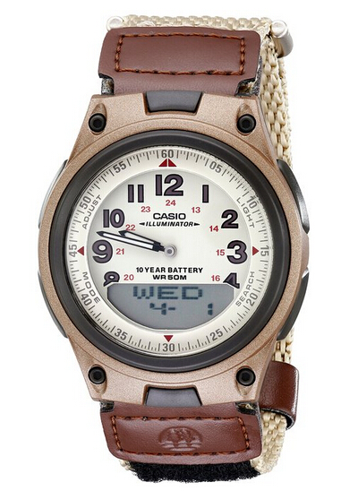 卡西欧 AW80V-5BV是一款性价比颇高的Casio多功能男表,棕褐色不锈钢表框,尼龙表带皮表扣,38mm 米黄色 模拟/数字双显表盘、10年寿命电池、在数字面板上可现实世界时间(30个城市)、闹铃、秒表、日历等,还有50米防水。美国亚马逊 (下单教程) 原价$29.95 ,现价$19.45(不含税) 转运到手约 200元。