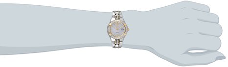 这款Seiko SUT068 精工女士时尚光动能石英手表,内置精确日本石英机芯,利用自然光功能,节能环保,外观采用金银配色不锈钢表壳表链设计,表框周围镶有水晶,晶莹剔透,奢华闪耀,防刮耐磨矿物玻璃表镜下为白色珍珠母贝表盘,表盘上镶有金色刻度,边缘精确到秒,3点钟方向为日历显示窗,夜光指针方便夜间读取,表盘直径28mm,防水深度50m。