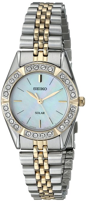 小巧!Seiko精工 SUP094 女士光动能珍珠母贝水晶手表 $99.95(转运到手约¥710)
