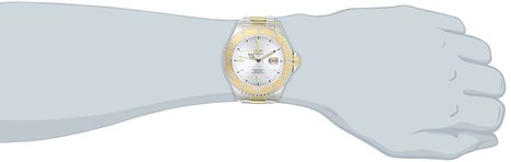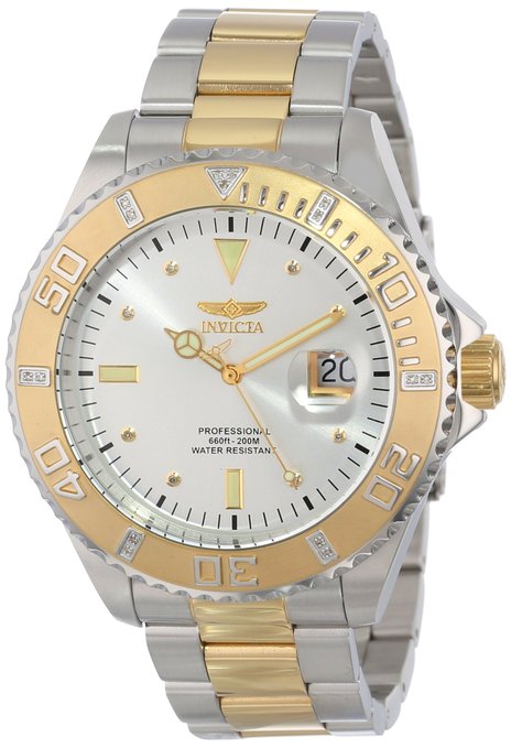 这款别克展望Invicta 15285 Pro Diver 男士潜水表,内置优质瑞士石英机芯,保证了时间的精确,外观采用金银配色不锈钢表壳表表链设计,尊贵典雅,沉稳大气,防刮耐磨矿物玻璃表镜下为银色表盘,表盘上镶有金色刻度,边缘精确到秒,3点钟方向为日历显示窗,夜光指针方便夜间读取,表盘直径47mm,防水深度200m。