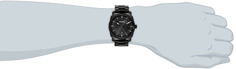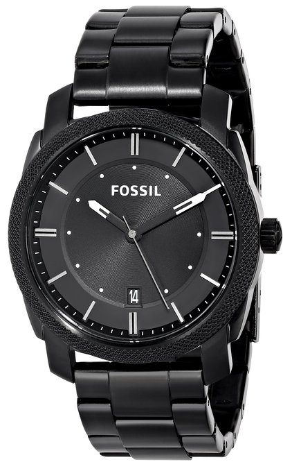这款 Fossil FS4775 化石男士黑色全钢石英手表,内置精确石英机芯,外观采用黑色全钢表壳表链设计,酷感十足,防刮耐磨矿物玻璃表镜下为黑色表盘,表盘镶嵌银色条形刻度,边缘精确到秒,6点钟方向为日历显示窗,银黑时分秒指针,表盘直径42mm,防水深度50m。