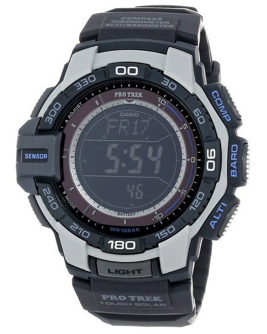 这款PRG-270-7CR太阳能反显登山手表,使用太阳能供电无需电池,充满电后最长可待机长达6个月。包括卡西欧第三代三重感应器(数字高度计、气压计、温度计和指南针),新增风暴警告功能,天气突变时,配戴者能第一时间知晓。可抵抗低温-10°C 。世界时间(48个城市),5组闹铃,1/100秒表功能等。表盘直径54mm,厚度14mm,强化耐磨玻璃表镜,表壳和表带均为树脂,防水深度 100米。美国亚马逊 (下单教程) 原价$180.00 ,目前售价$109.25(不含税) 转运到手约 765元。
