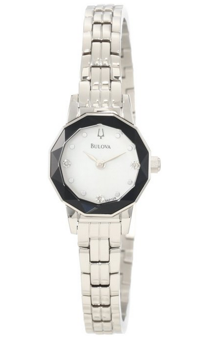 Bulova,Diamonds,女士手表,不锈钢表壳,不锈钢表链,日本石英机芯(电池供电)。颜色:白色珍珠母、指针:银色指针、时标:钻石时标和银色圆点、宝石:白色钻石、宝石数量:3。美国亚马逊 (下单教程) 原价$299.00,目前售价$107.95(不含税) 转运到手约 755元。