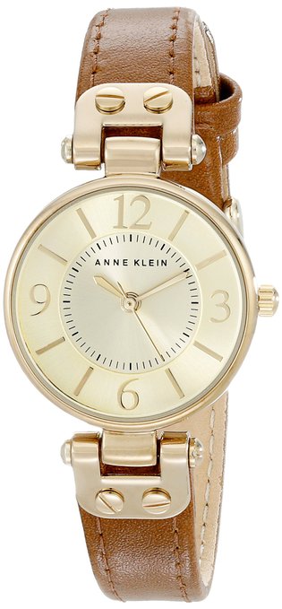 这款Anne Klein 109442CHHY 优雅气质石英女表,采用精准日本石英机芯,坚固防划痕矿物水晶表镜下淡棕色珍珠母贝表盘,十分精美时尚,小巧的时分秒指针看上去灵秀可人,表壳直径26mm,30m防水。非常适合时尚MM搭配时装佩戴!