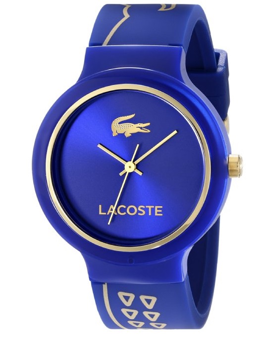 Lacoste鳄鱼 男士 2020086果阿蓝色树脂手表,作为时尚大牌的鳄鱼,自然也有属于自己的时装表,这款时装表,造型简洁,表面仅仅有指针和鳄鱼LOGO,表带上印有鳄鱼纹三角图案,相对来说蓝色款的更加的时尚,更加的富有现代潮流气质!
