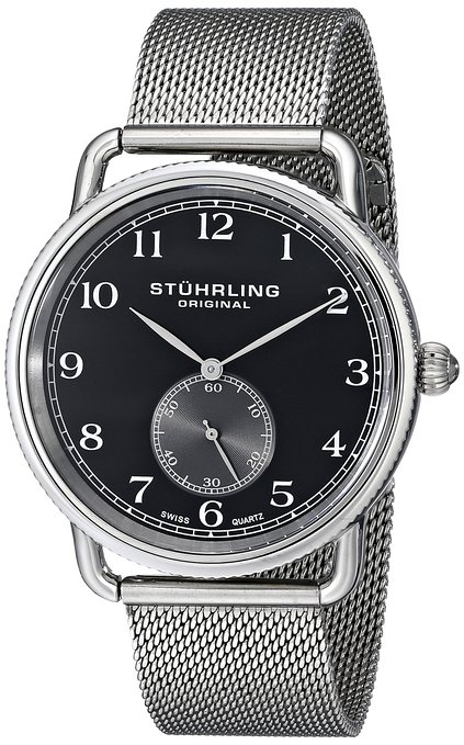 这款斯图灵Stuhrling Original男士石英手表内置优质瑞士石英机芯,保证了时间的精确,外观采用银色不锈钢网链搭配圆形不锈钢表壳设计,经典优雅,气质非凡,防刮耐磨矿物玻璃表镜下为黑色表盘,表盘上镶有银色阿拉伯数字刻度,边缘精确到秒,6点钟方向为秒针副表盘,银色时分指针,表盘直径41mm,防水深度50m。